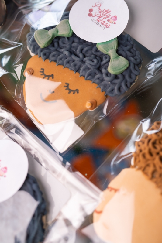 At Pretty Please Custom Eats, I do custom treats and baked goods—gourmet baked goods like custom Oreos, cakesicles, cake pops, cakes. As far as designs, I can do anything–How to Train Your Dragon, Garfield, whatever they need. I also cater, like small pickups or even soul food, you know, like vegetables and things like that.